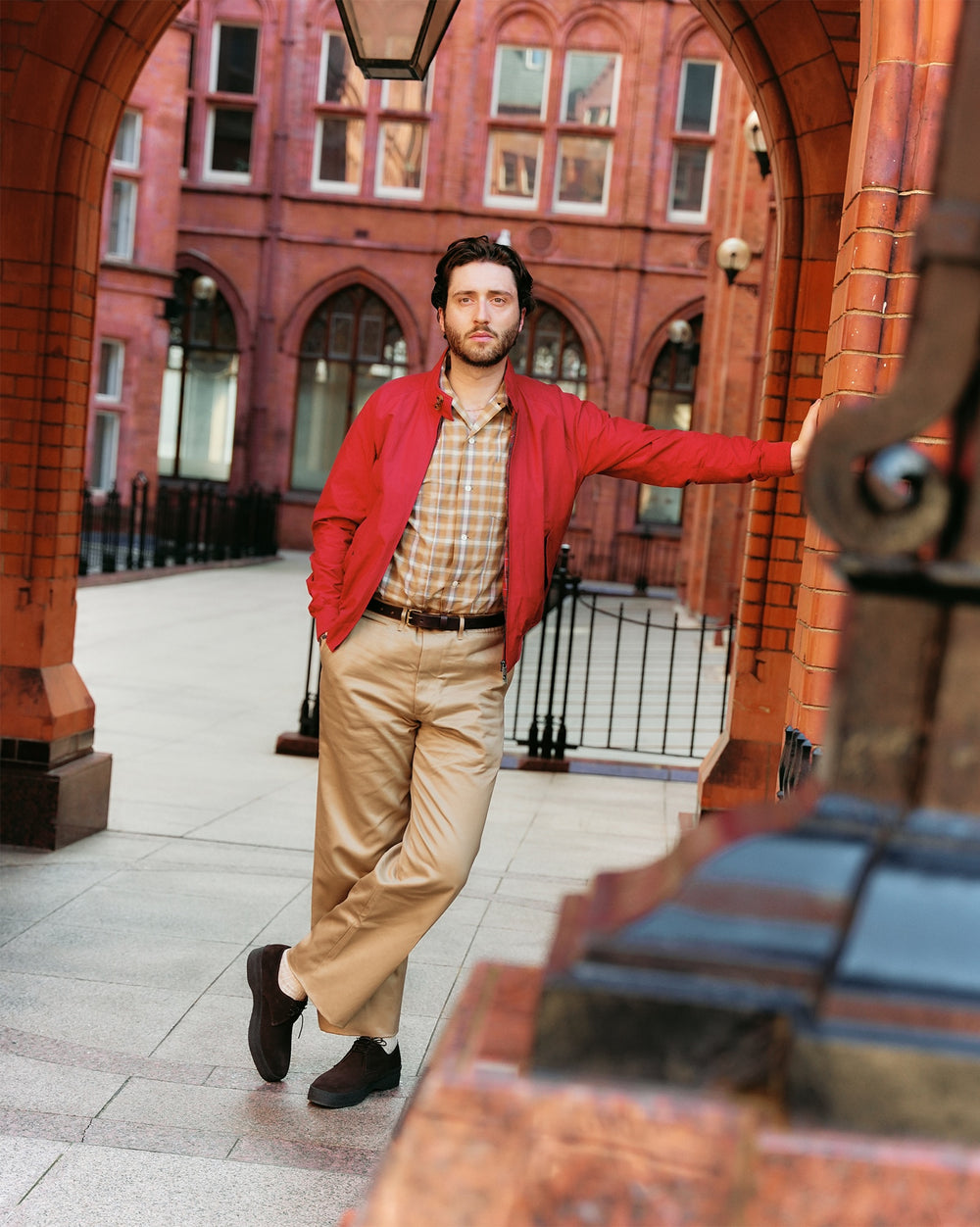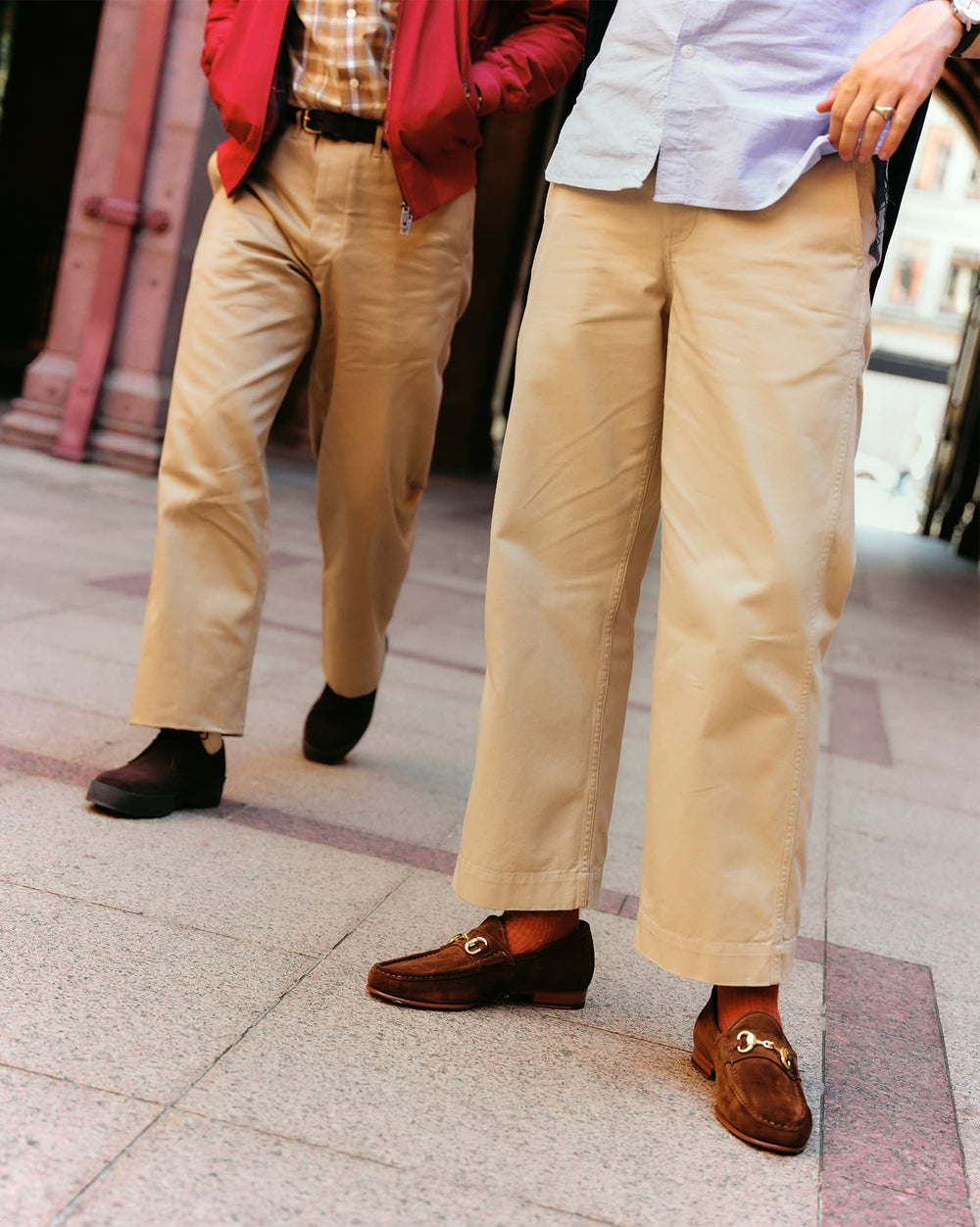 Finally, the Harrington jacket. Few garments have been as universally celebrated as the Harrington, particularly Baracuta’s G9, which has become known as the gold standard. After it was worn by Steve McQueen and James Dean in the 60's, the jacket was adopted by the youth, seeing it as a symbol of coolness and rebellion. There are almost endless ways to style this, but we've stayed true to classic Ivy League, and paired it with a Full Count check shirt, and a pair of Buzz Rickson's chinos.