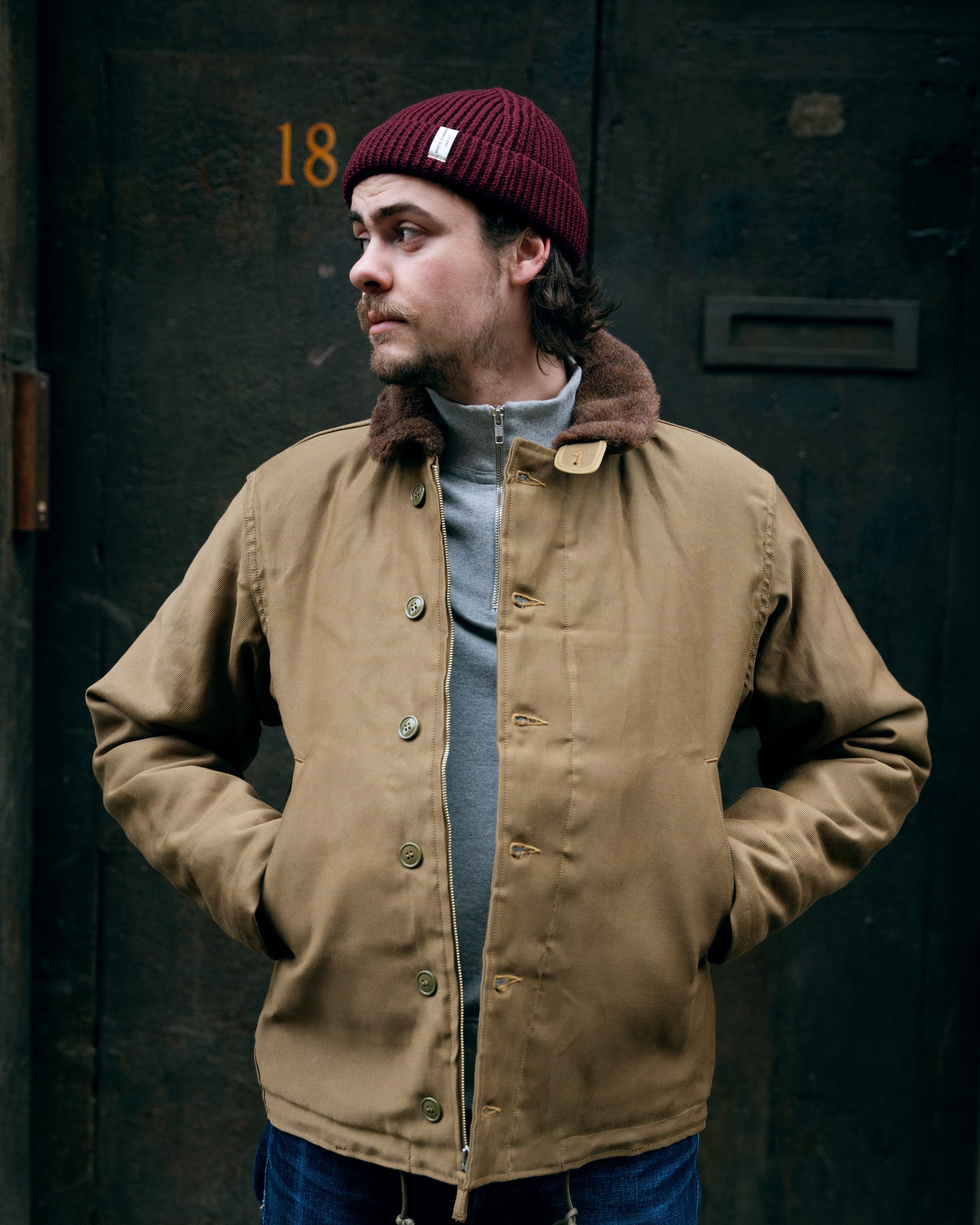 While the Tanker worked wonderfully on land, it was clear changes needed to be made for its naval variant. Lined with wool and with exposed knit cuffs, the jacket degraded easily, making it dangerous around heavy machinery as fraying could get caught in the equipment, and moreover simply wasn’t warm enough to protect troops in the high winds they were experiencing in the Atlantic. So, to combat these faults, the variation of the N-1 we know today was born.